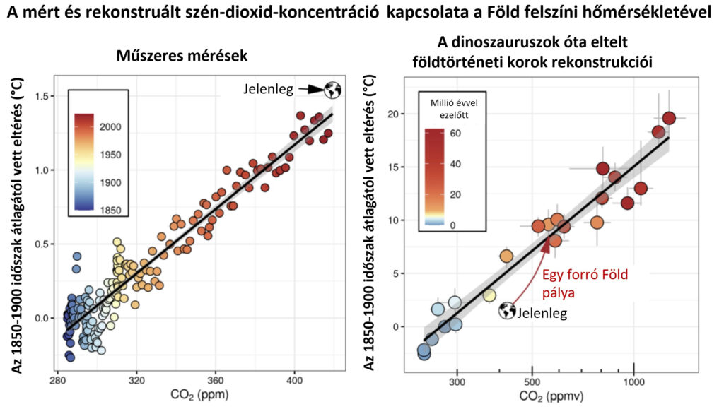 Ha a jégfuratmintákból és izotópelemzésekből nyert többmillió éves hőmérsékleti és szén-dioxid-koncentráció idősorokat egymás mellé tesszük, a kapcsolat minden földtörténeti korban fennáll: magas CO₂ mellett magas hőmérséklet jellemző. Habár az éghajlati rendszeren belüli ezen összefüggéshez képest jelenleg inkább kissé alacsonyabb a globális átlaghőmérséklet, mint amit a CO₂-szint indokolna, de már csak évtizedek kérdése, és elérhetjük a forró Föld korszak értékeit – a fizikai törvényeken alapuló modelljeink egyértelműen ezt jelzik.