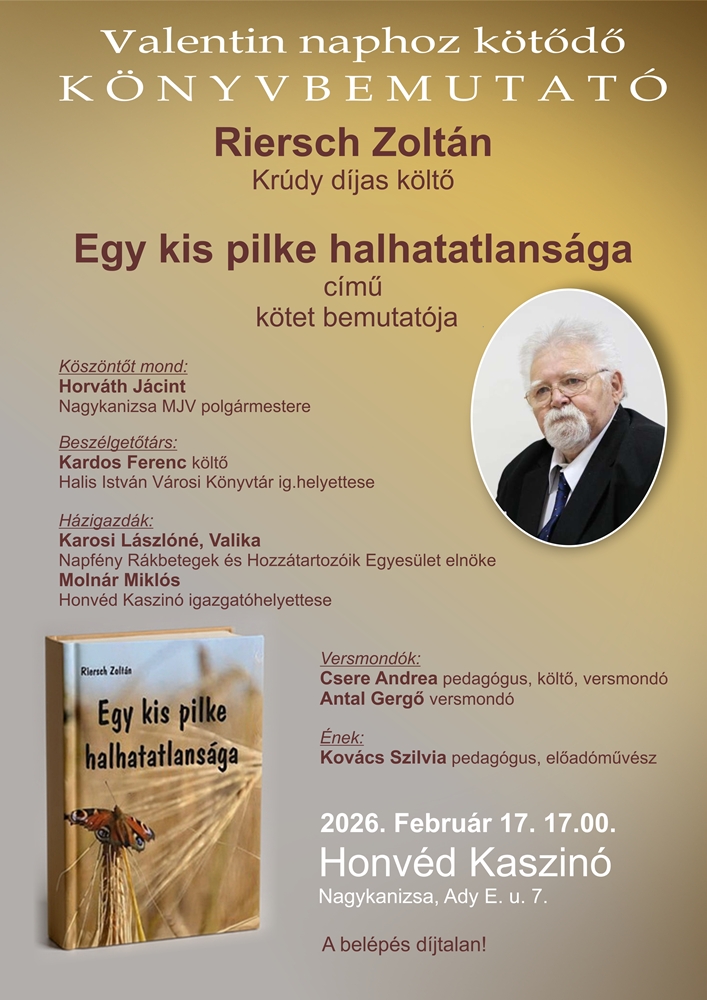 Riersch Zoltán, Krúdy díjas alkotó – „Egy kis pilke halhatatlansága” című csak szerelmes verseket tartalmazó kötetének bemutatója